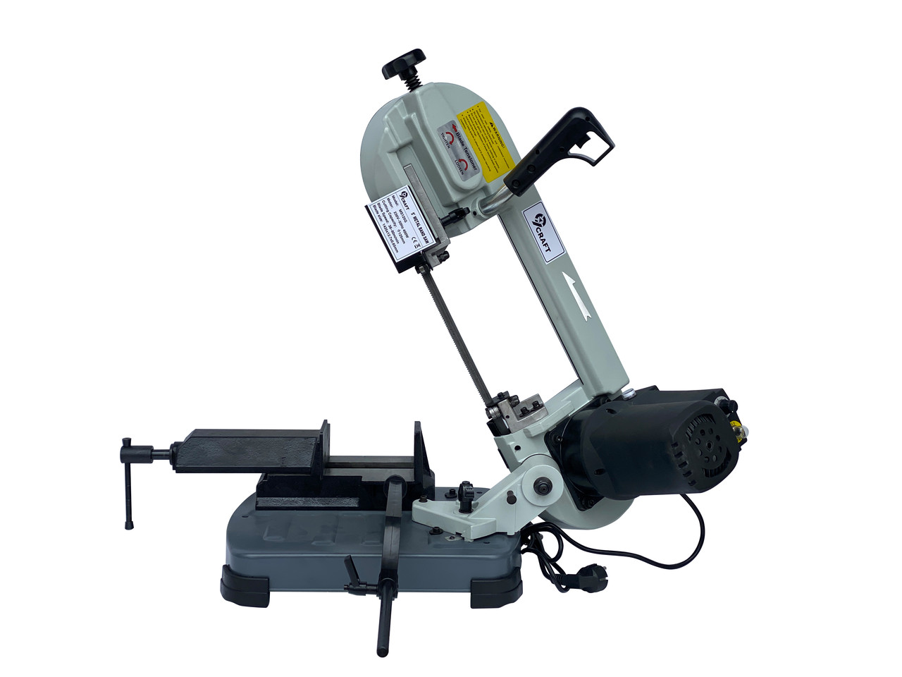 Настільна стрічкова пилка по металу 9craft MS125G. Цей верстат має плавне регулювання швидкості пиляльного полотна в діапазоні 38-80 м/хв. Пиляльне полотно має напрямні металеві ролики. Номінальна потужність двигуна складає 400 Вт. На двигуні розташовані кнопки увімкнення/вимкнення, регулятор обертів, індикатор увімкнення. Даний верстат здійснює чистий та рівний різ, дозволяючи економити матеріал заготівлі. 9craft MS125G підходить для різання різних металів, пластиків, деревини. Завдяки невеликим габаритам та вазі може використовуватись на виробництві, об'єкті, ремонтних майстернях. Стрічкова пилка 9craft MS125G може проводити відрізання заготовки в діапазоні від 0 до 60 градусів. Основа має швидкозатискні чавунні лещата.